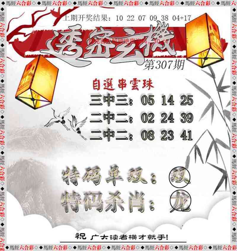 | 307期:⑧码 | 03.15.35.47.08.20.05.29 | 開:狗20 |