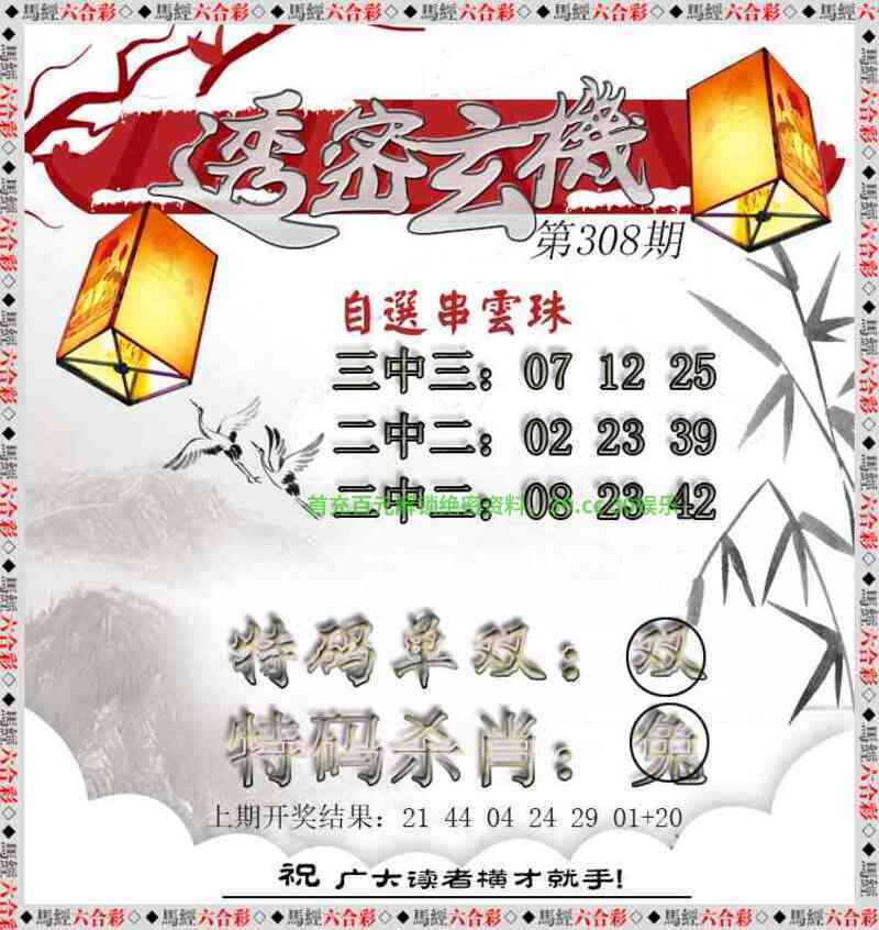 | 308期:五肖 | 马龙兔虎狗 | 開:兔39 |