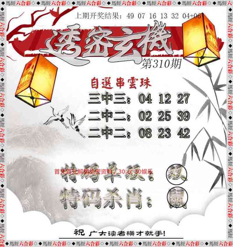 309期:金牌四肖【狗龙鼠牛】开:鼠06准